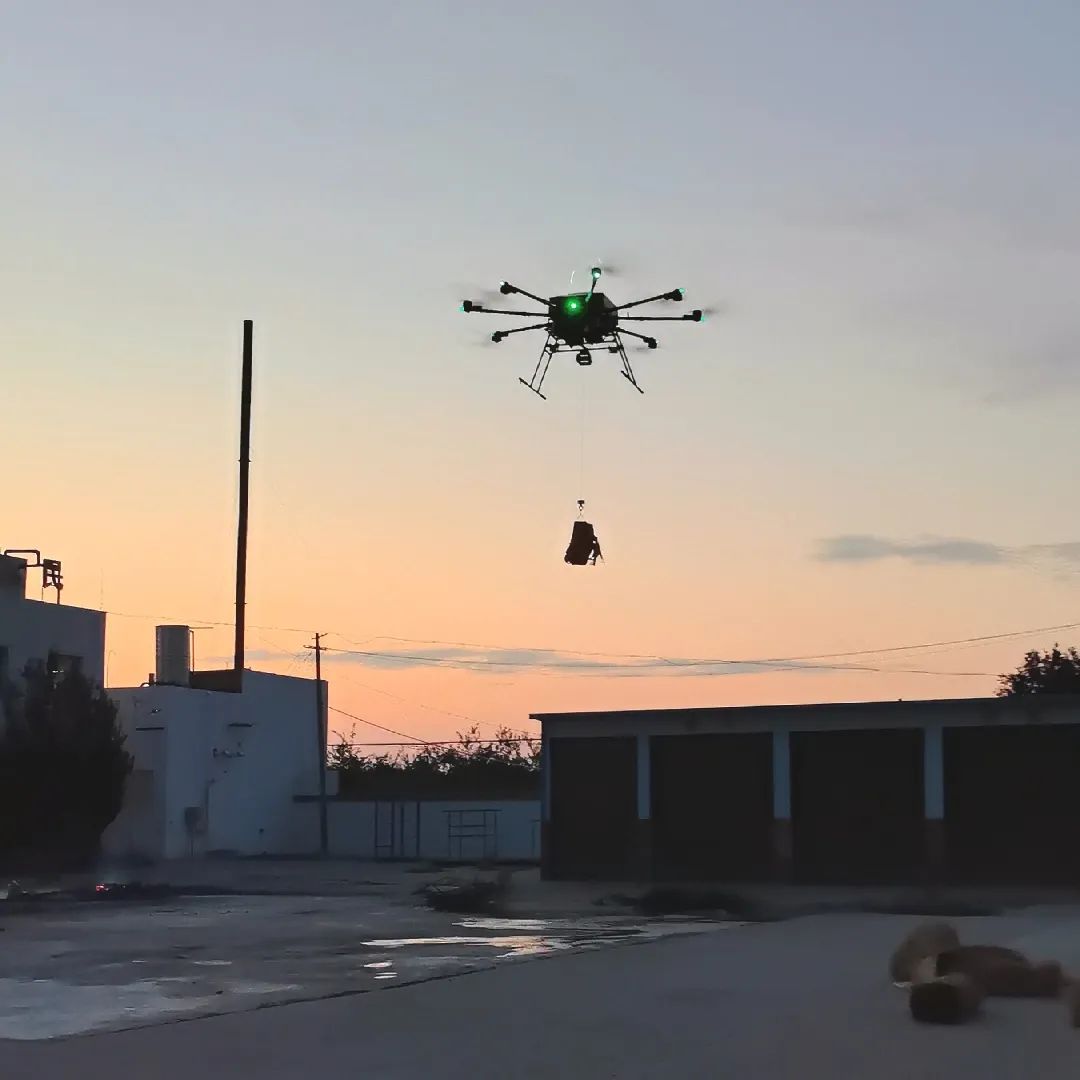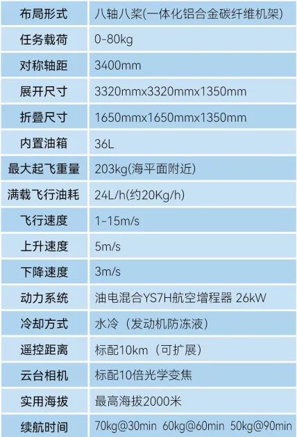 H880无人机吊载50kg物品,悬停飞行续航1.5小时。